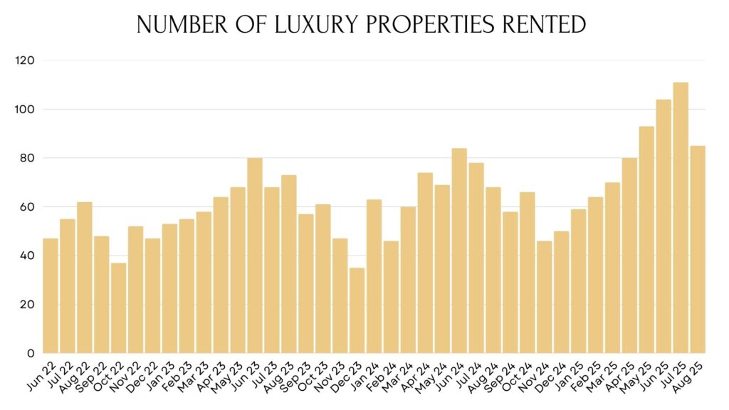 Luxury Long-Term Rentals ($4,000+/mo) Year-Over-Year: August 2025 vs. August 2024