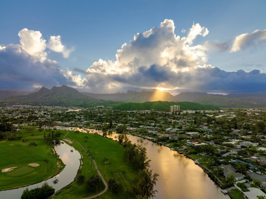 Why this property is spectacular: This brand new fully furnished home offers exceptional comfort and style. . The home features wood flooring real stone bathroom accents and four spacious bedroom suites each with a walk-in closet and ensuite bathroom. Two kitchens include high-end appliances and a wine cooler and the living room has a wet bar opening to a covered lanai pool and heated jacuzzi. Split AC is installed in all bedrooms. Enjoy kayaking or paddle boarding on the river from your backyard and quick access to Lanikai Beach, Kailua Beach Park, and Kailua Town.