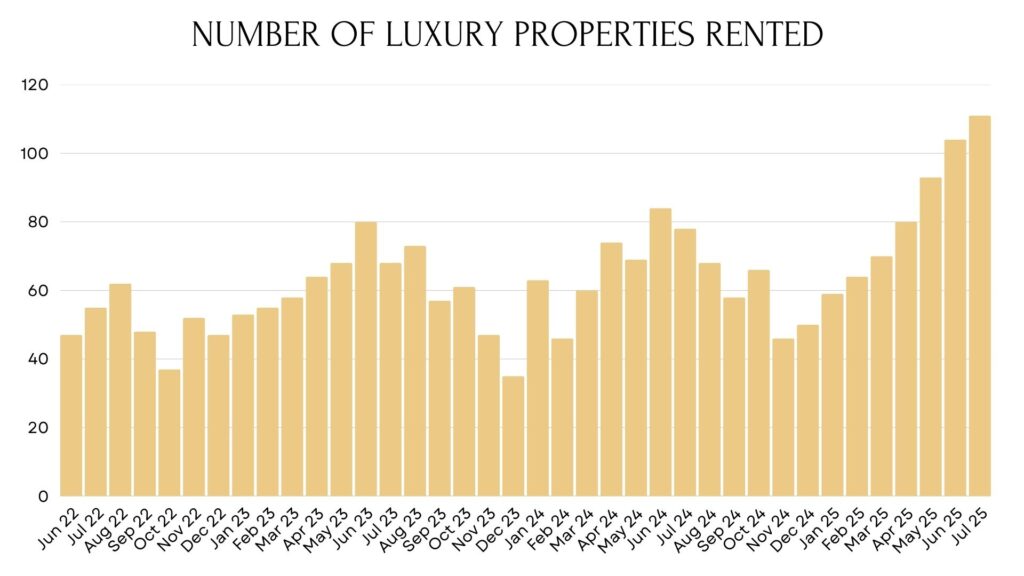 Luxury Long-Term Rentals ($4,000+/mo) Year-Over-Year: July 2025 vs. July 2024